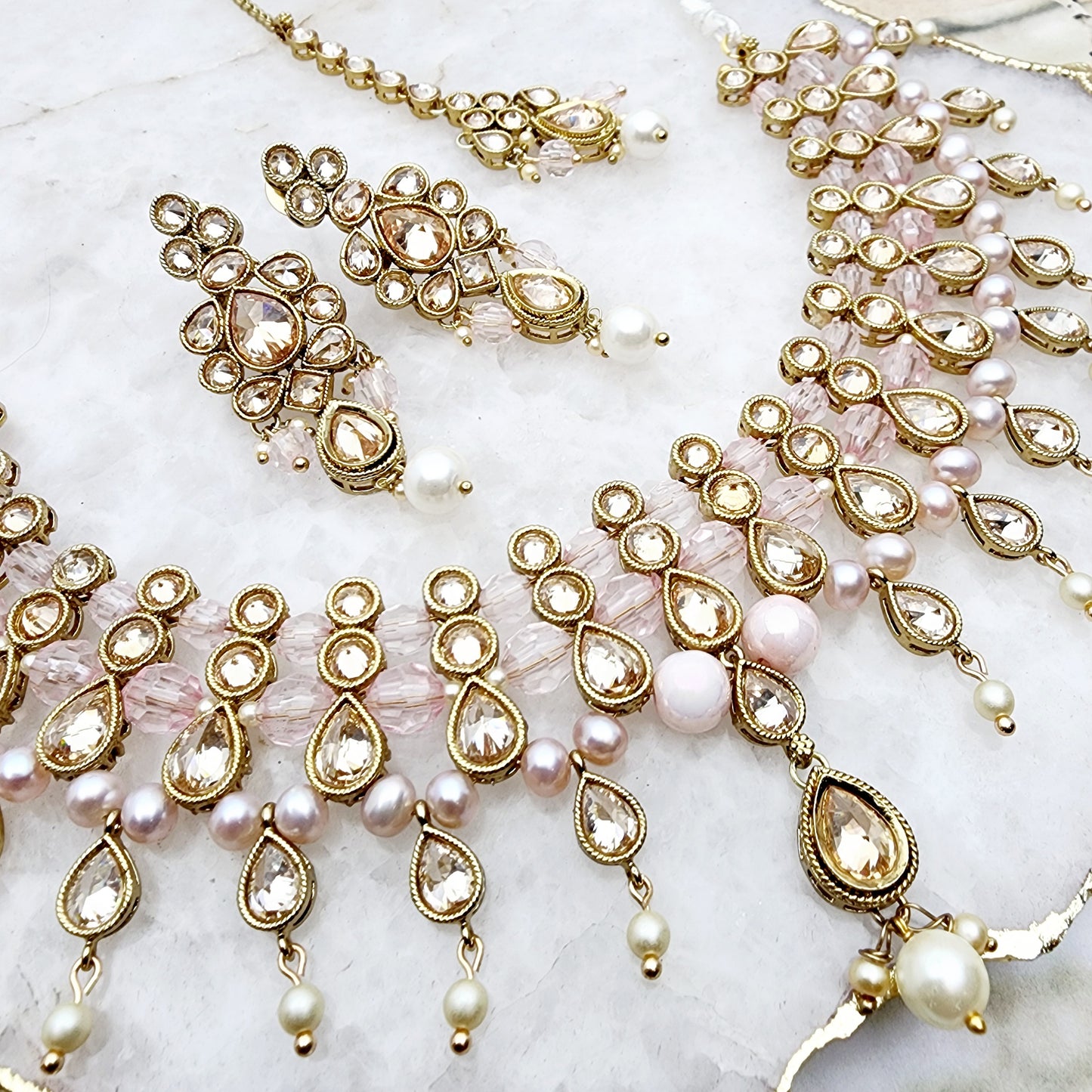 Discover our stunning collection of South Asian inspired necklaces for every occasion, including weddings and sangeets. Our Kundan designs come in a variety of styles, colours, and finishes, often featuring exquisite gold accents and embellishments such as gemstones, pearls, and crystals. Ships worldwide from Canada.